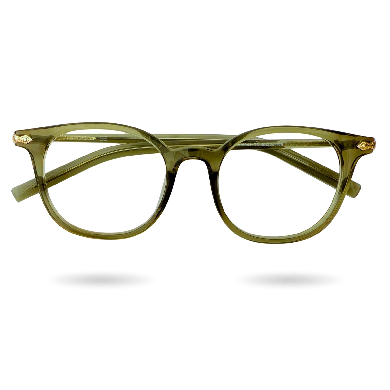 Material: Frente y varillas en acetato de alta densidad; bisagras con acento metálico.