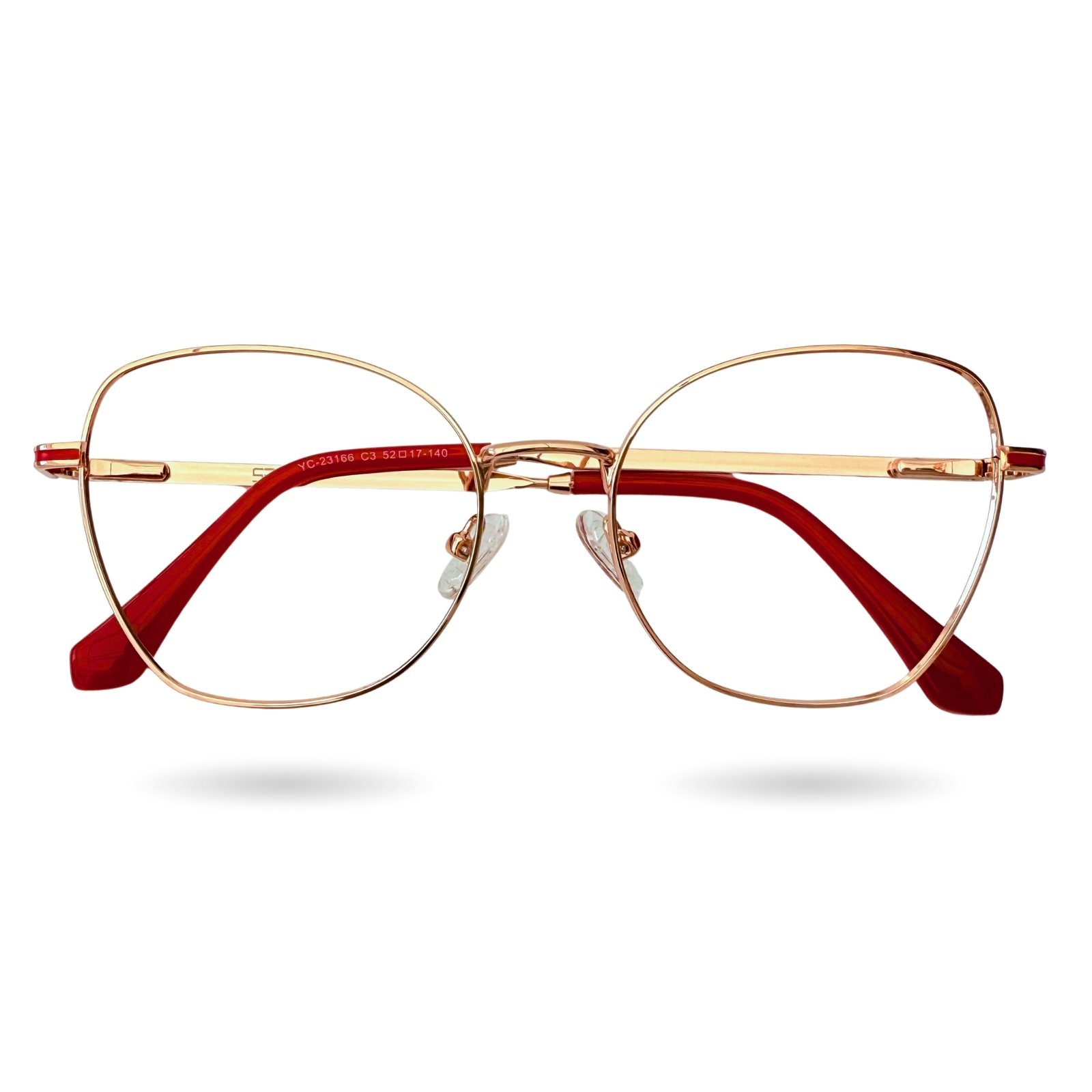 Diseño: Cat-eye con acento rojo, estilo moderno y expresivo.